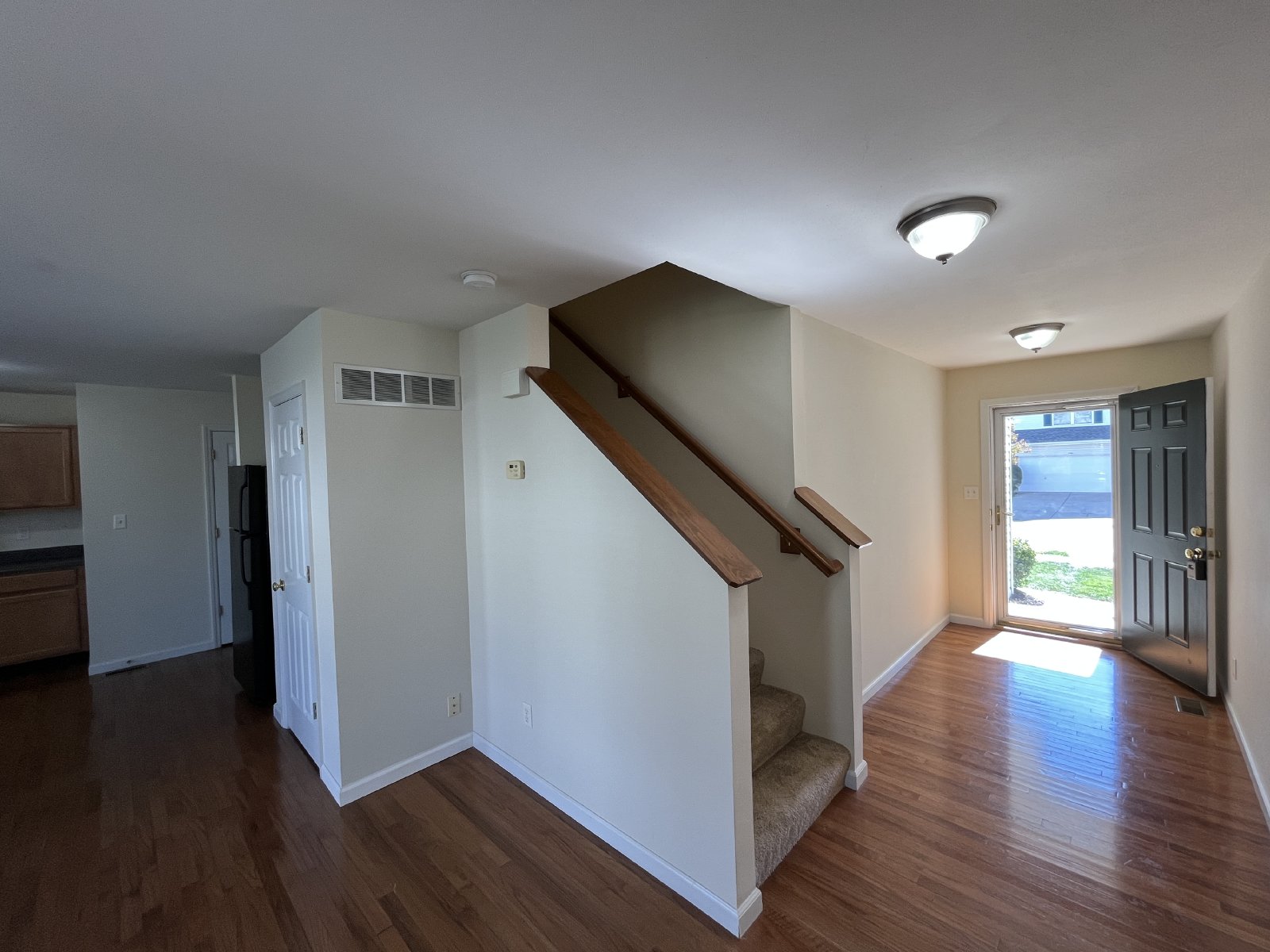 Location! Location!! Location!!! Move right in to this spotless villa in St. Peters located minutes from 364. First floor boasts open kitchen/living area with gleaming hardwood floors, half bath and bay window leading to walk-out patio. Freshly painted and brand new carpet installed this week on the second floor. Huge master bedroom is complemented by two walk in closets and full bath with double vanity. All three bedrooms have walk-in closets. Spacious basement with plenty of room for storage. Pets require approval and additional fees. Hurry, this one won't last!