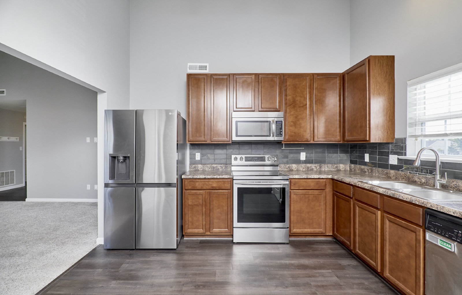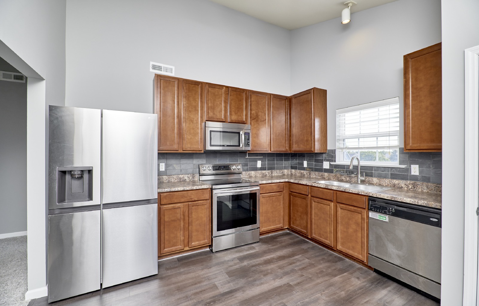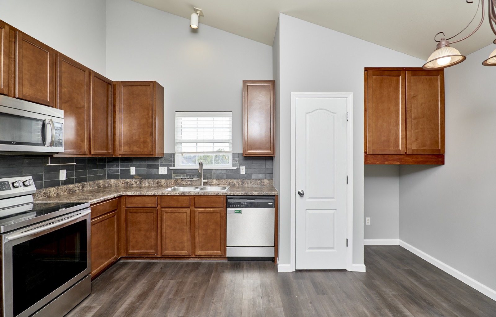 Meticulously maintained 2 bedroom 2 bath condo in the highly desirable Montecito community is waiting for new tenants to call it home. Enjoy a neighborhood filled with a 5 acre lake, walking trails, and close to shopping, restaurants, schools, & MUCH MORE! Step inside this move-in ready home and take note of the open and spacious floor plan, luxury flooring, and abundance of natural light. The modern kitchen includes a spacious dine-in area, upgraded 42 cabinetry, stainless appliances, and door leading to a cozy balcony. There is a large vaulted master suite with a full bath and a walk-in closet. The second bedroom has access to the guest bathroom as well. There's also a convenient laundry room with washer/dryer included. 1 assigned parking spot, plus extra guest parking. Water, sewer, trash paid by landlord! Only minutes away from the Page extension/94/40. No pets. Hurry, this one won't last!